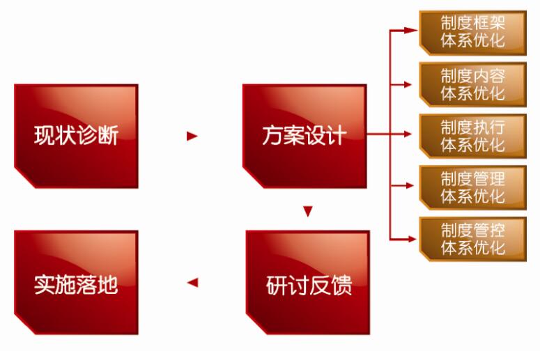華夏經緯在充分調研的基礎上,評價現有制度體系的基本運行情況,評估現有制度體系與管理實際的契合程度,對標行業標桿企業,從行業情況 、客戶實際情況及需求出發,進行制度框架體系優化、制度內容體系優化、制度執行體系優化、制度管理體系優化、制度管控體系優化。
