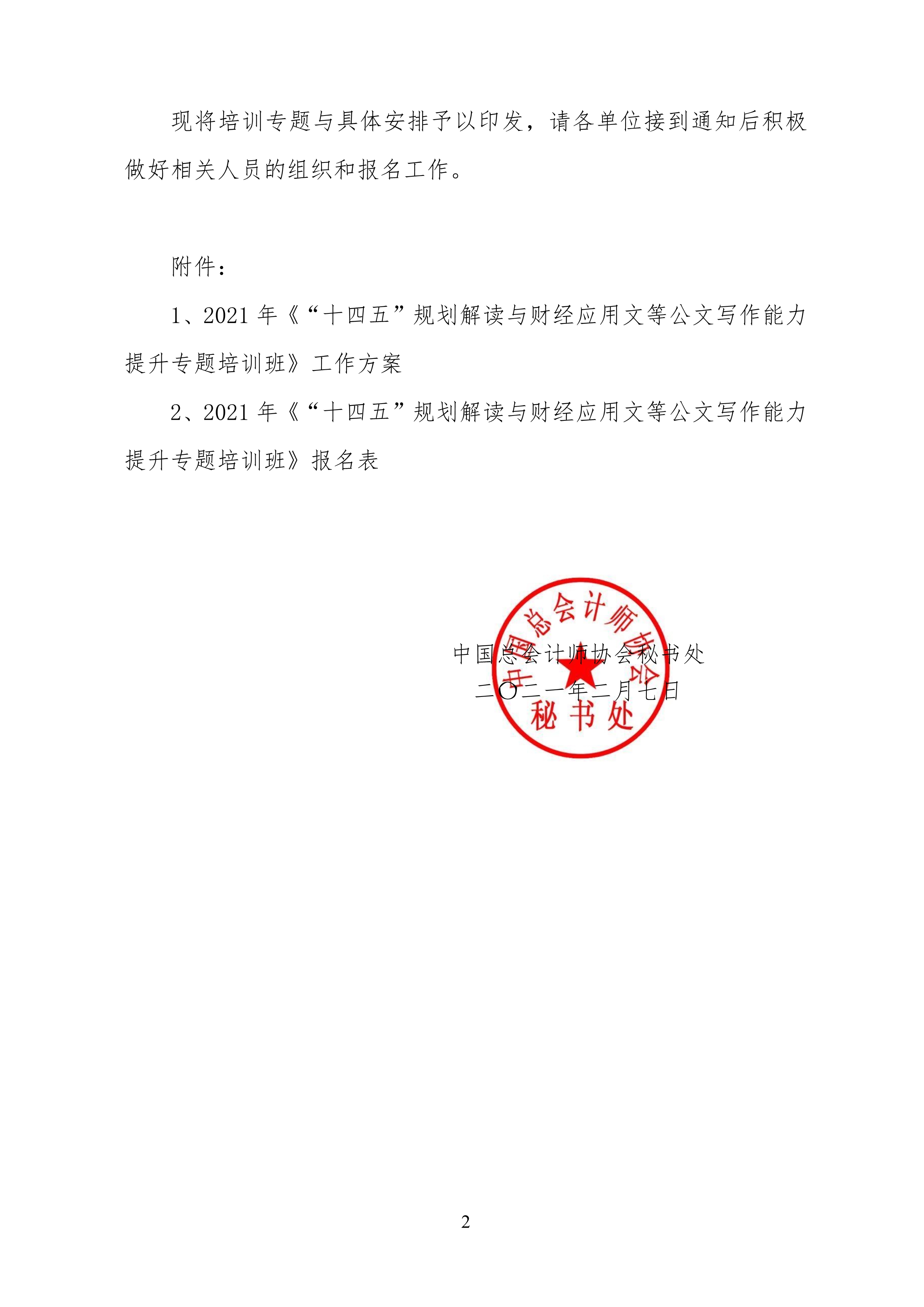 附件:中總秘[2021] 13號 關于2021年舉辦《“十四五”規劃解讀與財經應用文等公文寫作能力提升專題培訓班》的通知/upload/edit/file/20210220/20210220163807_59996.pdf